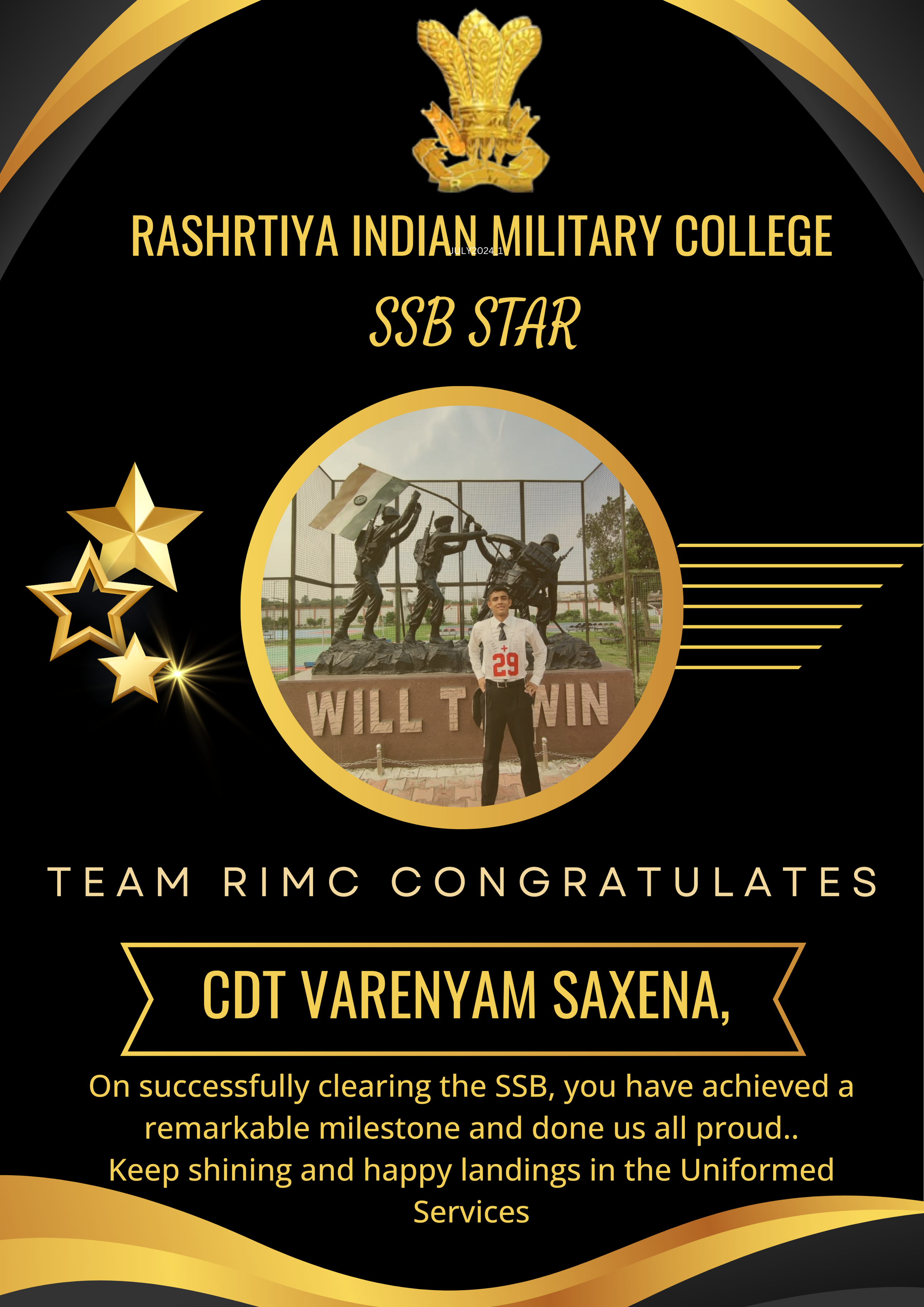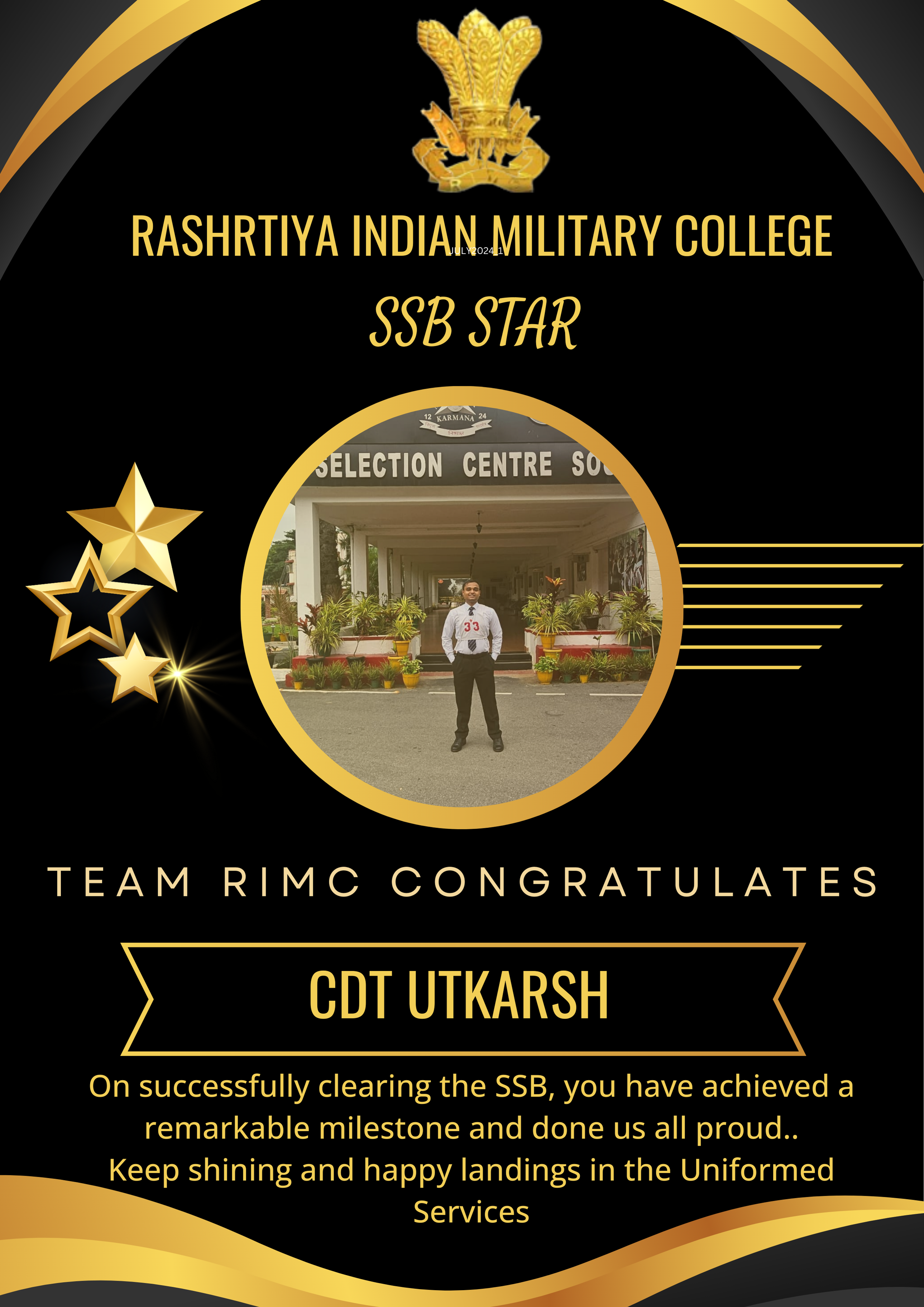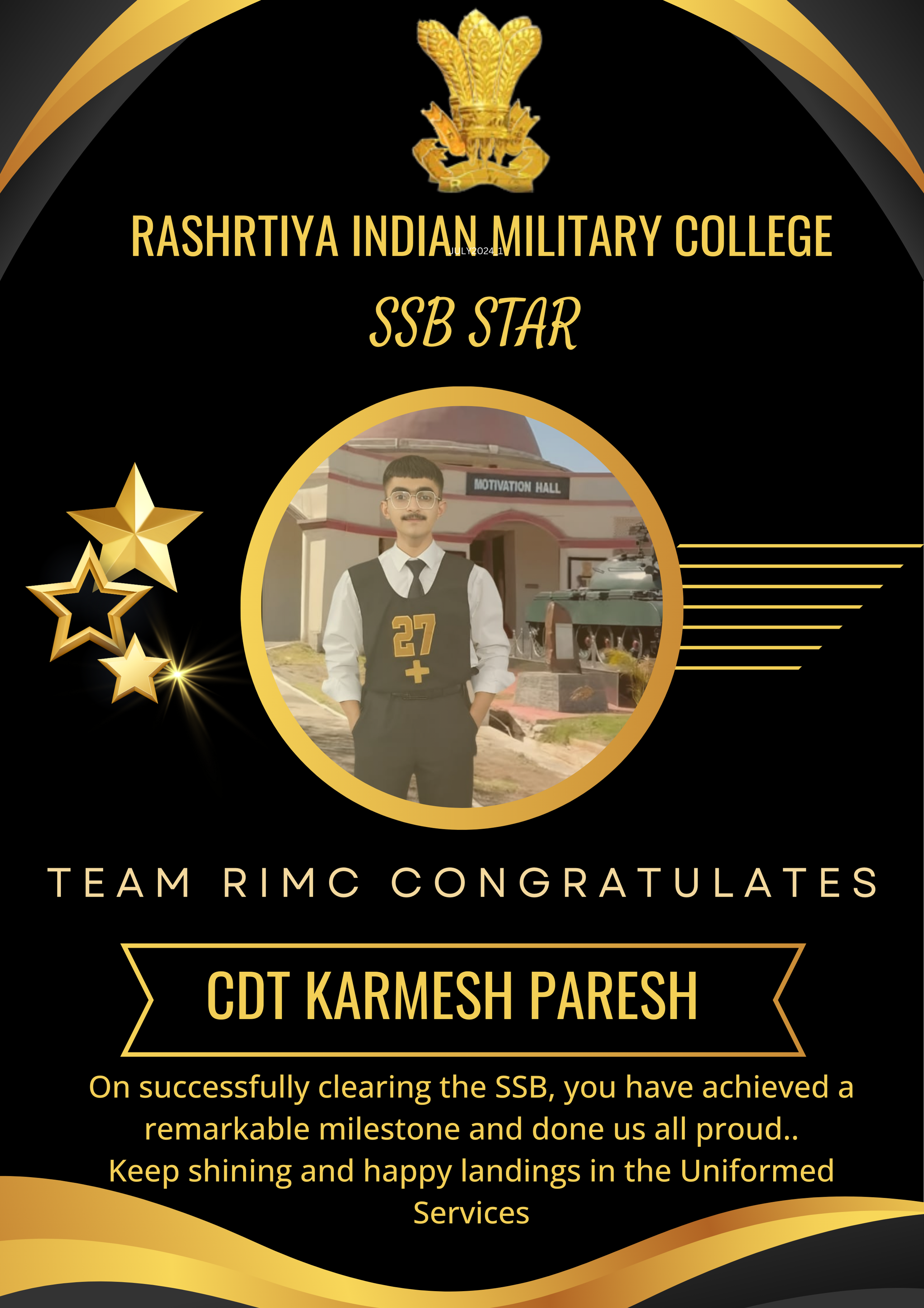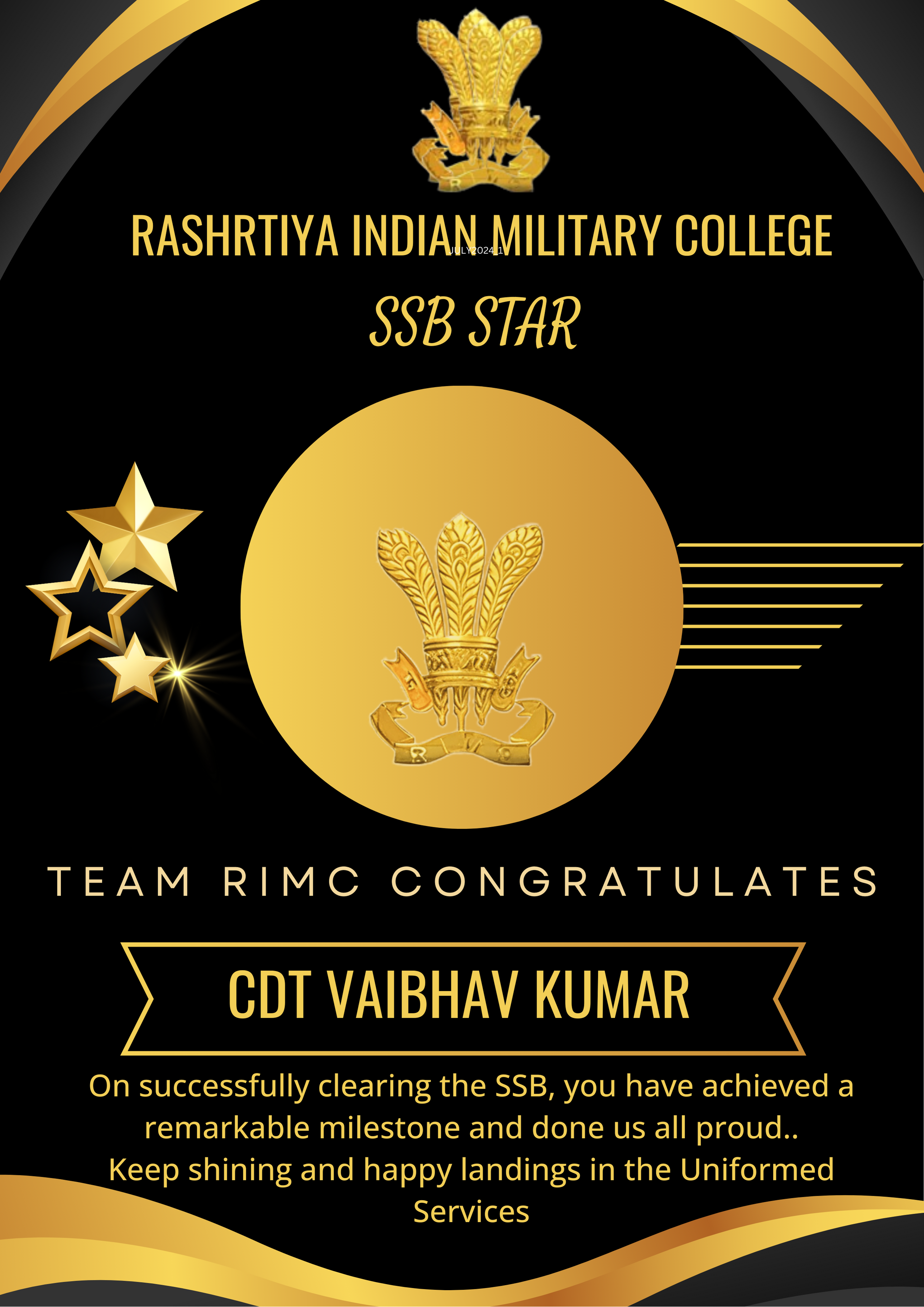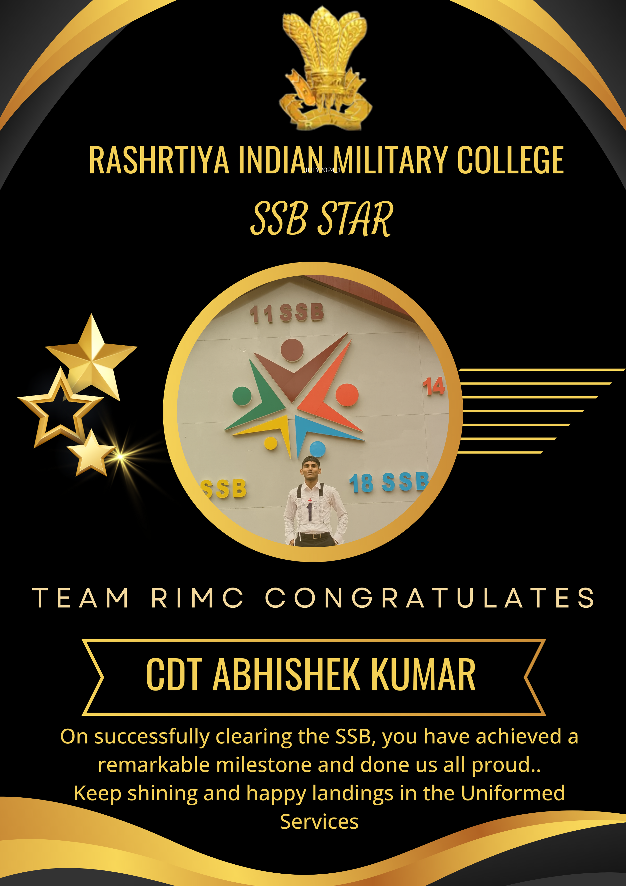 RIMC continues to excel in preparing cadets for the National Defence Academy. Our dedicated faculty works tirelessly to ensure our cadets are well-prepared for both written examinations and the SSB interview process.